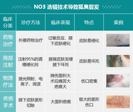 这些医生往往无专业诊疗经验,导致患者术中存在很大的安全隐患,患者术后狐臭复发、留疤、皮肤坏死等成为常态,其术后复发率高达70%以上。